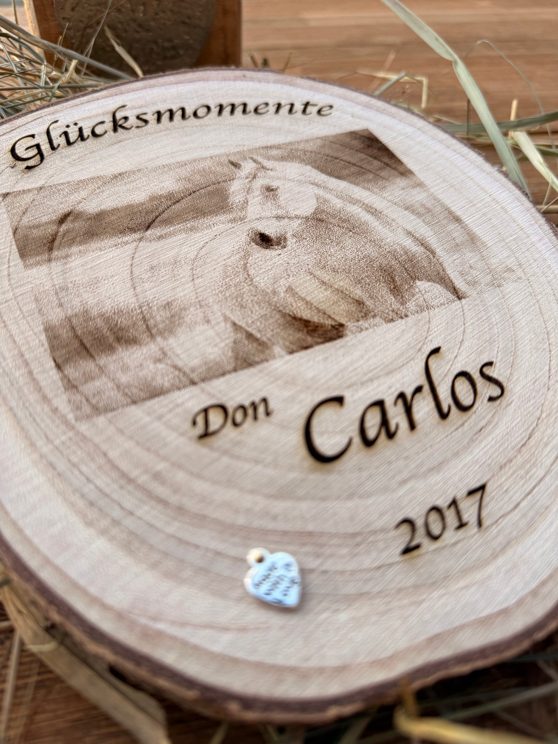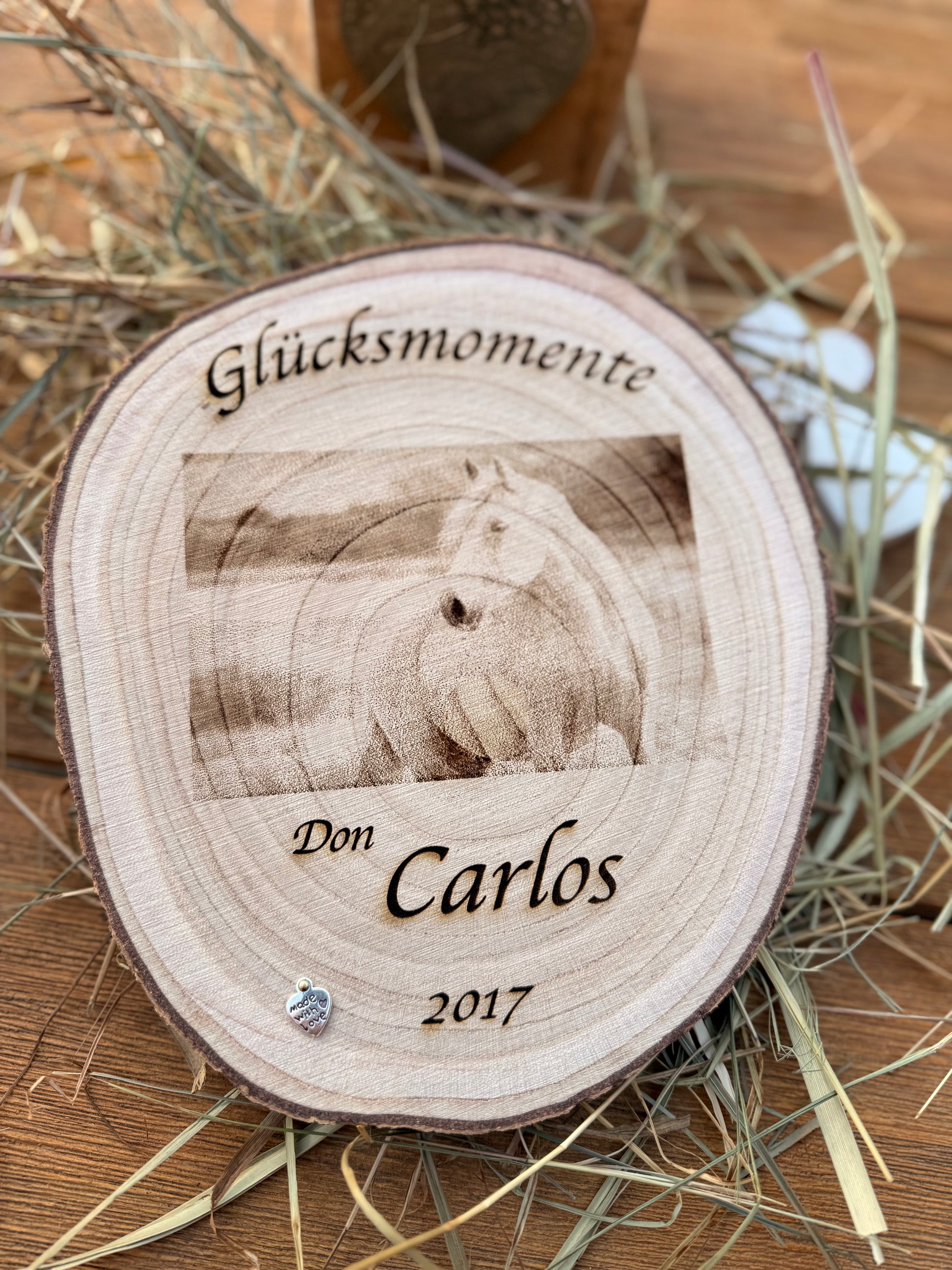 Baumscheibe Natur mit Wunschgravur (ca. 20-22 cm) , handmade ! Eine pferdige Geschenkidee ! (Versandkostenfrei!) (inkl. nummeriertem Unikat-Zertifikat)