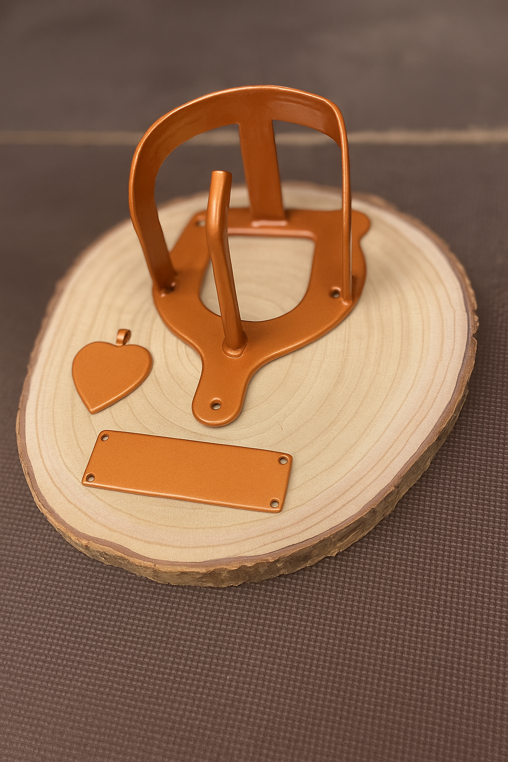 Nach dem einbrennen der Pulverbeschichtungen erfolgt die Veredelung sowie die Individualisierung .