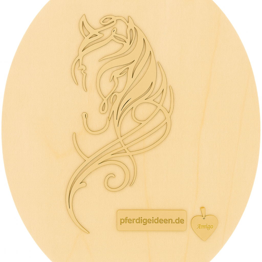 Pferdekopf 4 aus Metall auf Holz mit Namensschild aus Metall inkl. Herz! (ca. 30x14cm) - Handmade - DIE pferdige Geschenkidee ! (Versandkostenfrei!)