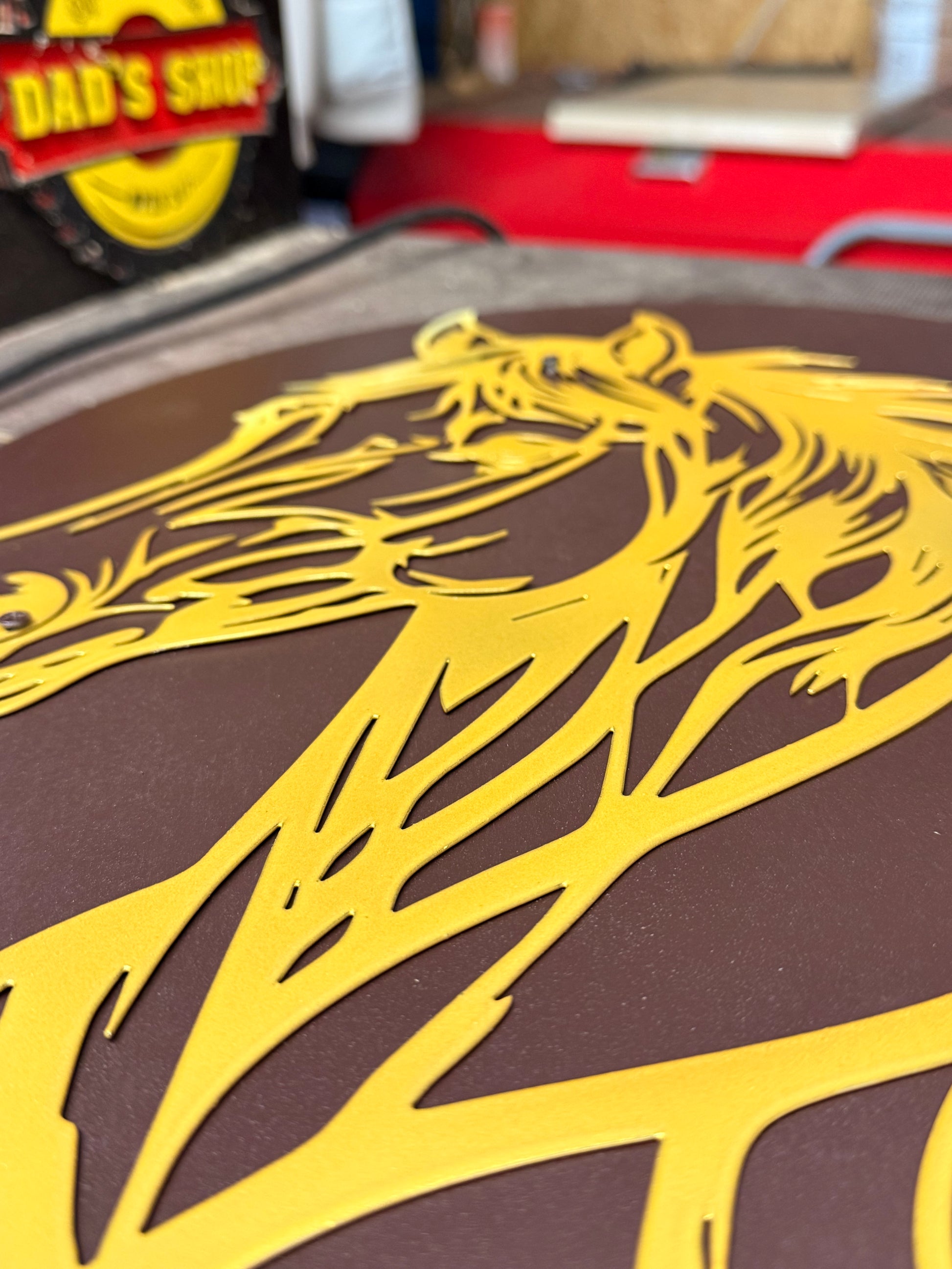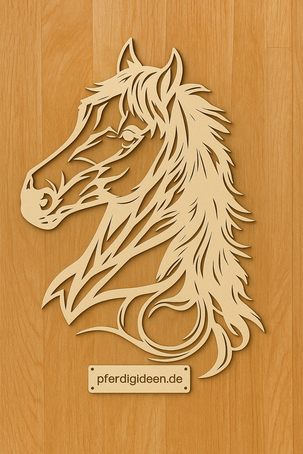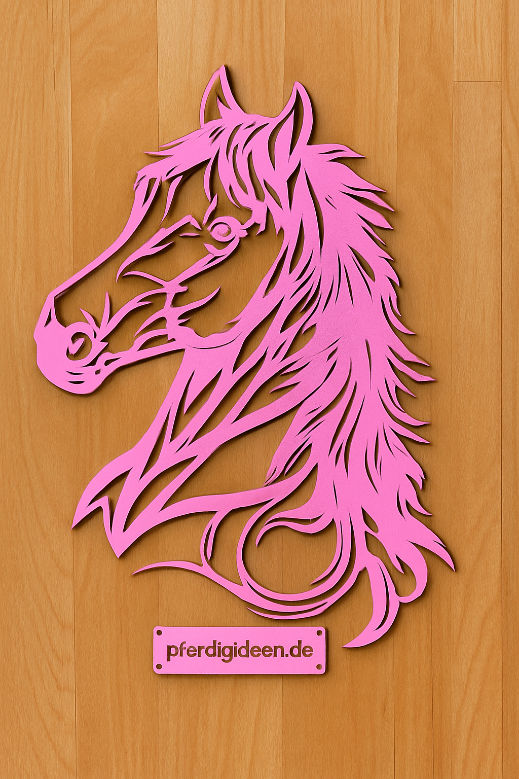 Der Pferdekopf ist aus Metall (Motiv ist ca. 40 cm Höhe & 38cm Breite (ohne Holzplatte), welches gereinigt und in meiner Werkstatt von Hand sandgestrahlt wird.